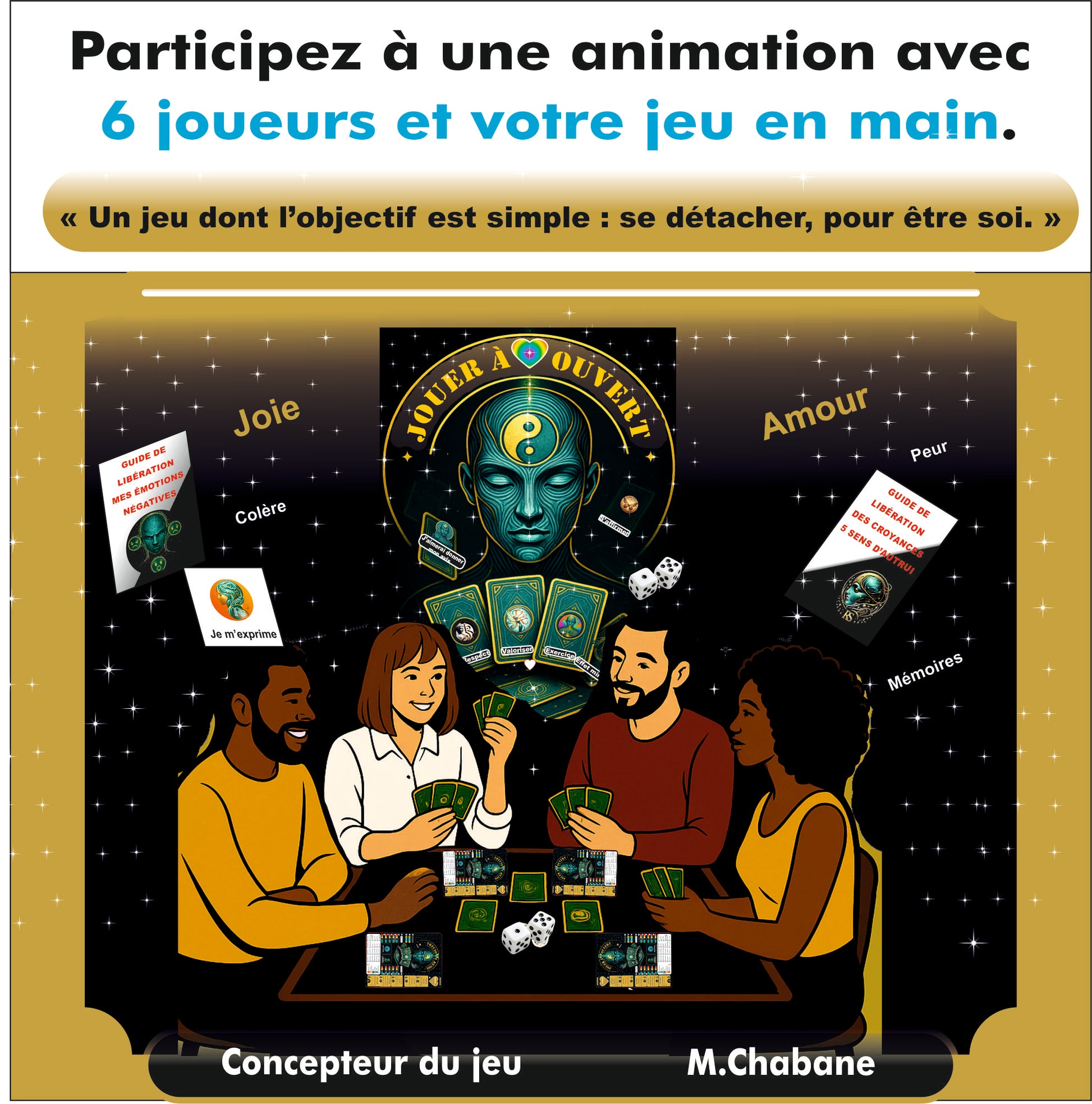 Un jeu pour explorer vos blocages, vous reconnecter à vous-même, vous libérer du regard des autres et oser être pleinement vous, seul ou à plusieurs.